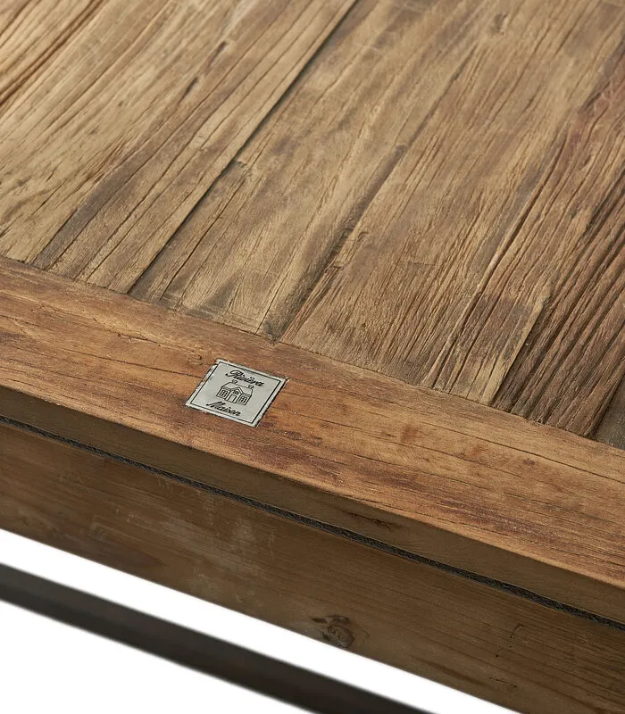 Een eigentijdse dinertafel met een robuust tafelblad van gerecycled iepenhout en sparrenhout. Het ijzeren frame geeft de tafel een industrieel karakter. De lades aan de zijkant bieden ruimte voor tafelaccessoires als placemats, onderzetters en eventueel tafellinnen. Een mooie aanvulling op de Shelter Island serie. Verkrijgbaar in 200×90 en 180×90 cm.