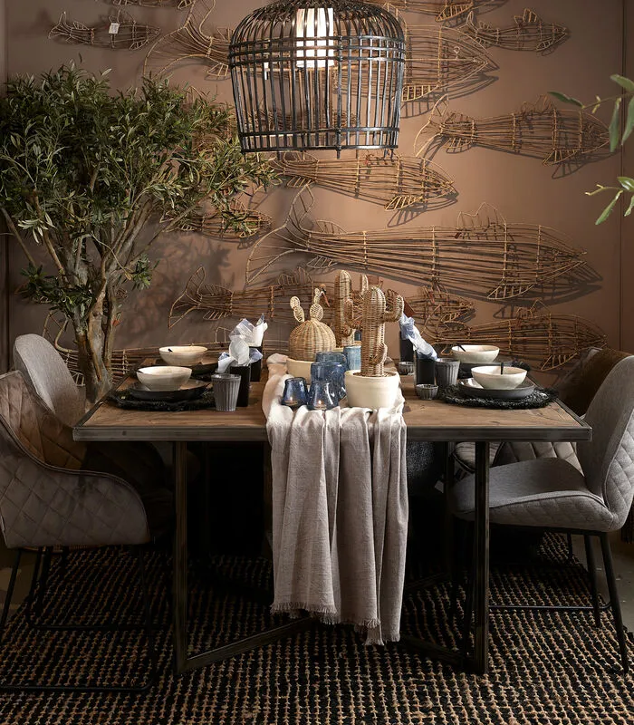 Dat staat ook heel mooi in huis: een vierkante eettafel. Die zijn er niet zo veel. Lekker ruim, plaats voor iedereen. Met heel veel liefde en vakmanschap gemaakt van gerecycled eiken– en essenhout. Mooie vierkante vlakken op het blad met schuin ingelegde brede strepen. Een metalen rand en onderstel maken deze milieuverantwoorde tafel compleet.