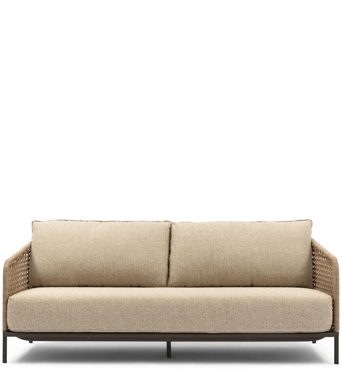 Buiten net zo comfortabel zitten als binnen? Dat kan met deze outdoor bank Sanur. Een ruime driezitsbank met een dun, opengewerkt, gevlochten frame en heerlijk dikke kussens als zitting en in de rug. De bank is gemaakt van weerbestendig materiaal. In deze serie is ook een outdoor loungefauteuil verkrijgbaar.