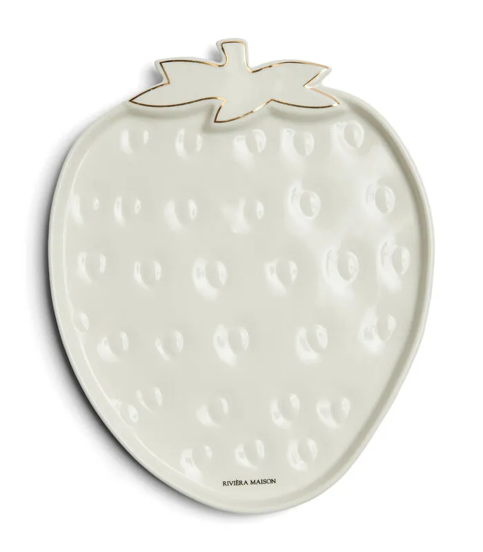 Rivièra Maison Serveerschaal Aarbei Serveerbord – Tasty Strawberry – Wit / Goud