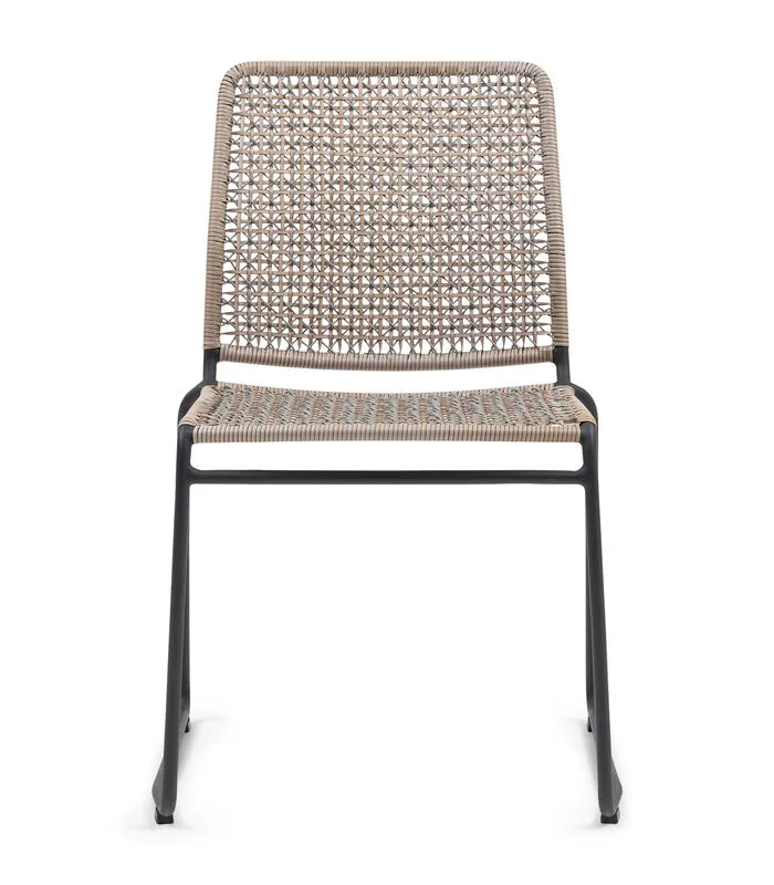 Buiten eten in de zomer is elke keer weer een feest. Echt lekker zitten aan tafel is dan wel zo prettig. Dat is met deze stoelen aan tafel goed geregeld. Metalen sledepoten geven stabiliteit en het wicker is in een speciaal patroon geweven, met een prachtig resultaat. De stoel is weerbestendig en stapelbaar.