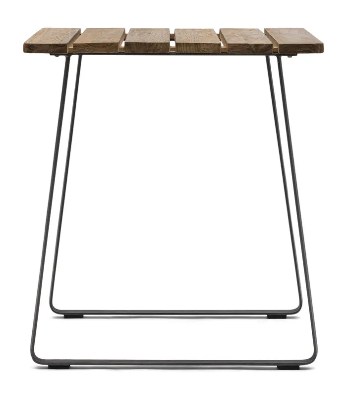 Dit is een leuke bistrotafel van 70 bij 70 centimeter. De tafel heeft een warme houttint en een stoer donker onderstel van metaal. De robuuste metalen poten zorgen ervoor dat de tafel stevig staat. Leuk om de tuin mee aan te kleden met wat bloempotten en accessoires erop of als eettafeltje op een klein terras of balkon.