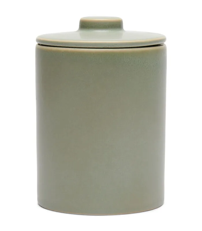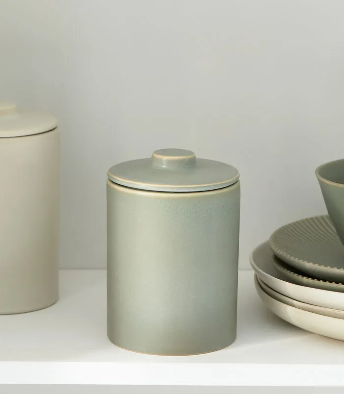 In een prachtig vergrijsde groene kleur is dit de RM Marseille voorraadpot maat S. De pot is gemaakt van porselein en heeft een strakke vormgeving. De ronde deksel heeft als extra een siliconen ring, waardoor de pot extra goed en luchtdicht sluit. Verkrijgbaar in verschillende maten en uitvoeringen.