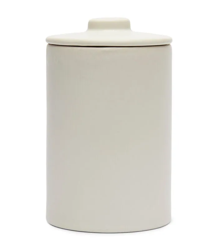 Dit is de royale opberger RM Marseille maat M, een voorraadpot gemaakt van gepolijst porselein. De cilindrische pot heeft een strakke, rustige uitstraling, wat wordt versterkt door de matte witte finish en een strakke greep op het deksel. Verkrijgbaar in verschillende maten en uitvoeringen.
