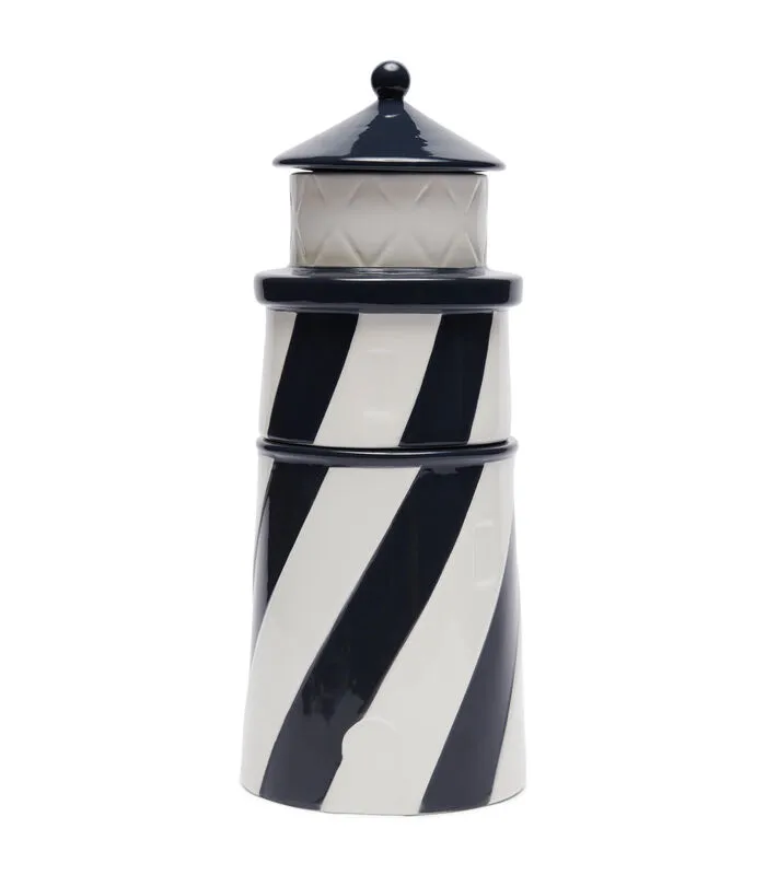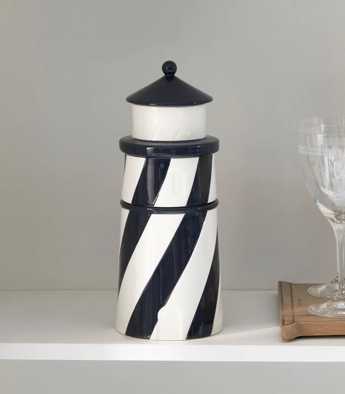 Rivièra Maison Voorraadpot Met Deksel, Snoeppot Vuurtoren – Lighthouse – Zwart /Wit