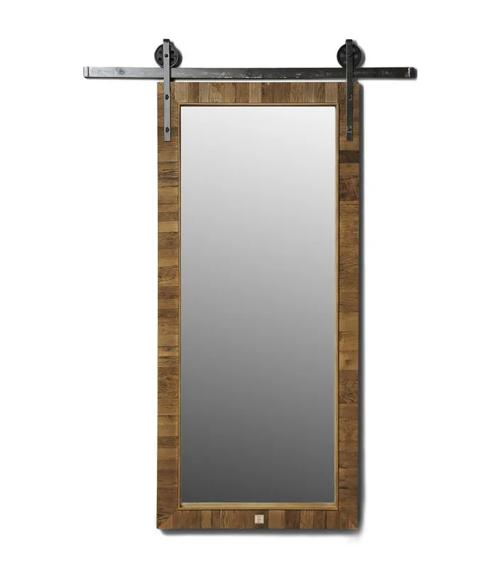 De Markham Mirror is een bijzondere spiegel. De grote, rechthoekige spiegel van 180 x 80 centimeter hangt namelijk op rails, zodat je deze naar links en rechts kunt bewegen. Het geheel heeft een industriële uitstraling. De lijst om de spiegel is gemaakt van eikenhout.