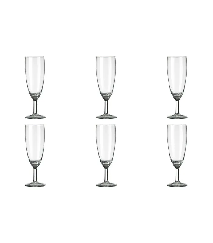 Deze Gilde champagneflûtes van Royal Leerdam zijn nog steeds graag geziene gasten op feesten! Want met hun simpele elegantie, het universele karakter en functionaliteit zijn dit zeker perfecte glazen voor het drinken van de beste champagnes. Deze champagneglazen hebben een lage steel, wat de stabiliteit versterkt. Daarnaast kunnen deze glazen zeker tegen een stootje en zijn ze bestand tegen dagelijkse wasbeurten in de vaatwasser. Deze set bestaat uit 6 champagneflûtes met een inhoudsmaat van 16 cl.
