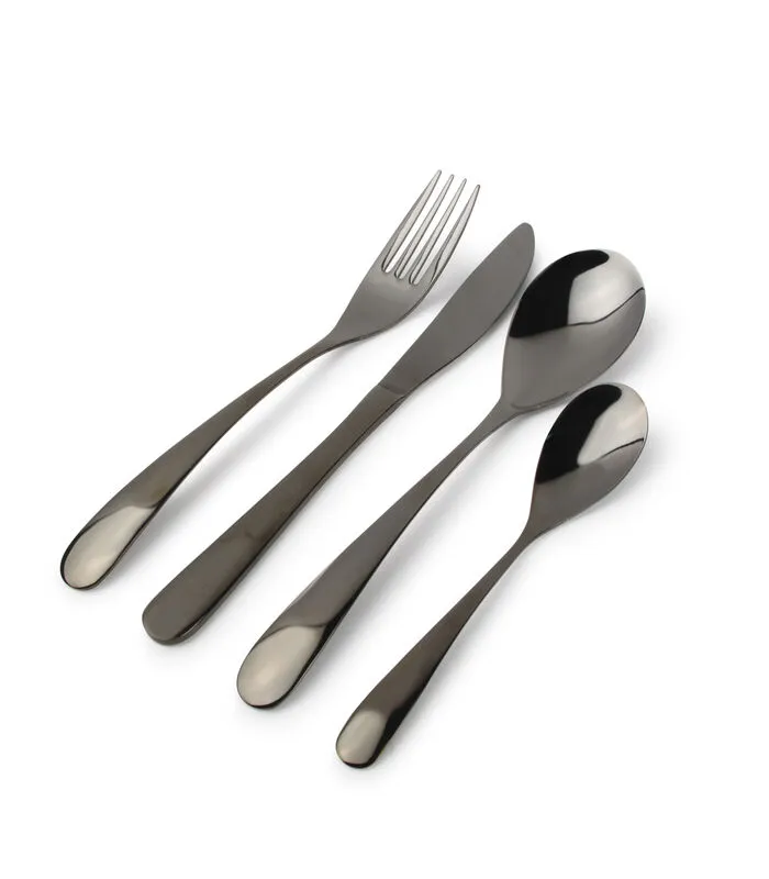 Viva is een bestekset van roestvrij staal, bestaande uit 24 stuks. De collectie kenmerkt zich door een eigentijdse afgeronde vorm. Koper, zwart, gold of zilver? Kies één kleur of combineer meerdere kleuren naar hartenlust… De 24–delige set bestaat uit:. 6 x tafelmes 22,5cm (13/0) 6 x tafelvork 20,5cm (18/10) 6 x tafellepel 21cm (18/10) 6 x koffielepel 15cm (18/10).