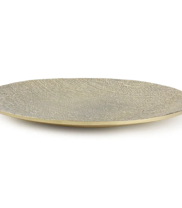 Deze zacht Gouden decoratieve schaal met wondermooi papyrus reliëf doet je zonder twijfel wegdromen. Een absolute must have voor elk interieur.