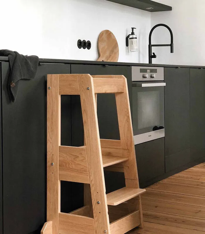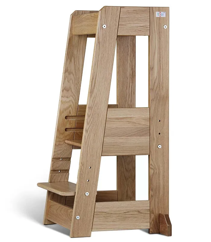 De leertoren is verstelbaar om uw kind tijdens zijn ontwikkeling te begeleiden. Kindveilige kwaliteitsproducten van hout zonder schadelijke stoffen.