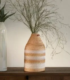 Rivièra Maison Rieten Vaas Droogbloemen, Met Strepen – Crystal Bay – Bruin / Wit