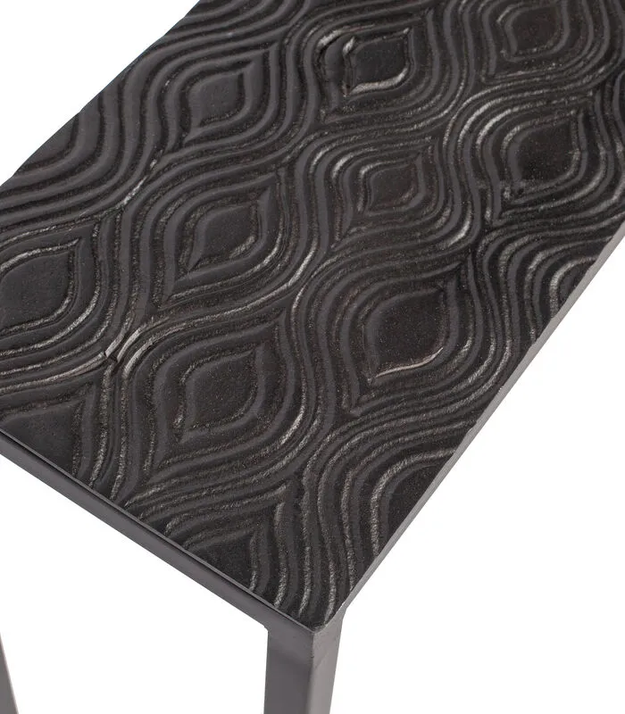 Deze set van 2 Lane bijzettafels uit de collectie van het Nederlandse merk WOOOD Exclusive hebben een sierlijk en elegante uitstraling door het pauwenoog patroon in het tafelblad. De bijzettafels hebben beide een aluminium blad, één met een antique brass afwerking en de andere met een zwarte afwerking. De onderstellen zijn gemaakt van ijzer met een zwarte afwerking.