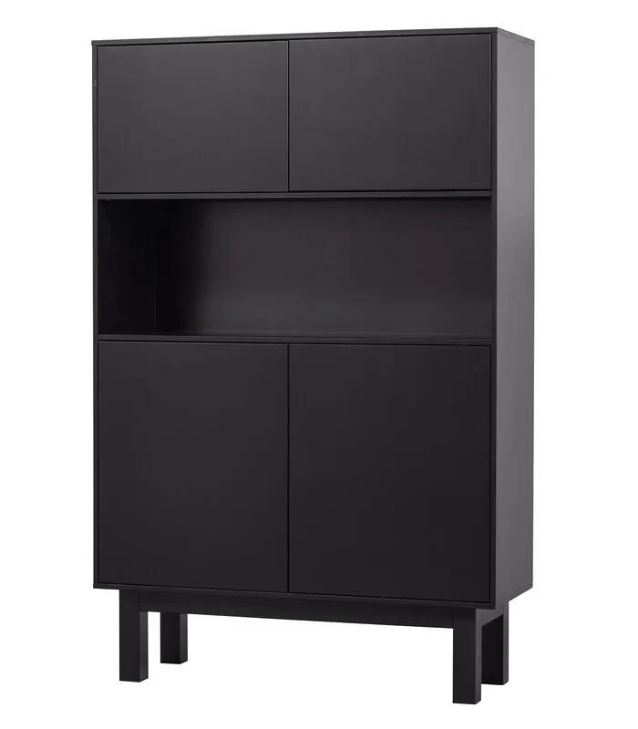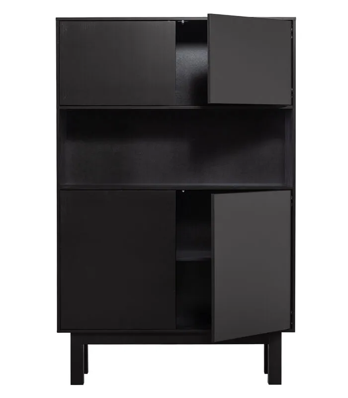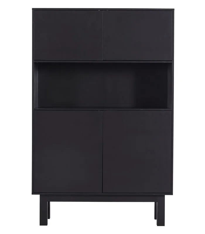 De Finca drankkast heeft vier deuren en vier royale opbergvakken. Achter de bovenste twee deuren bevindt zich een afgeschermd opbergvak van 39x108x39 cm (hxbxd). Het open vak hieronder biedt meer dan genoeg ruimte voor bijzonder glaswerk of decoratie. De twee vakken hieronder worden afgeschermd door twee deuren, deze vakken hebben een hoogte van 31 cm en strekken zich over de gehele breedte van de kast. Artikelkenmerken