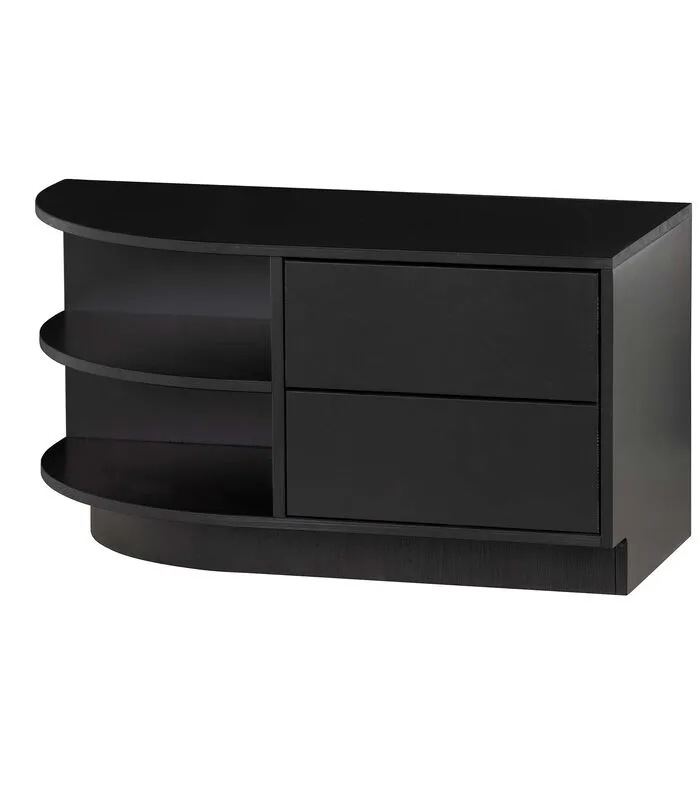 Het Finca tv meubel met rond element is een waar pronkstuk in de woonruimte. De open vakken bieden genoeg ruimte voor het presenteren van jouw mooiste woondecoratie. De twee laden houden nog eens een ruime opbergruimte uit het zicht. De onderrand van het tv meubel laat 7 cm ruimte over aan de voorzijde, hierdoor lijkt het meubel te zweven.
