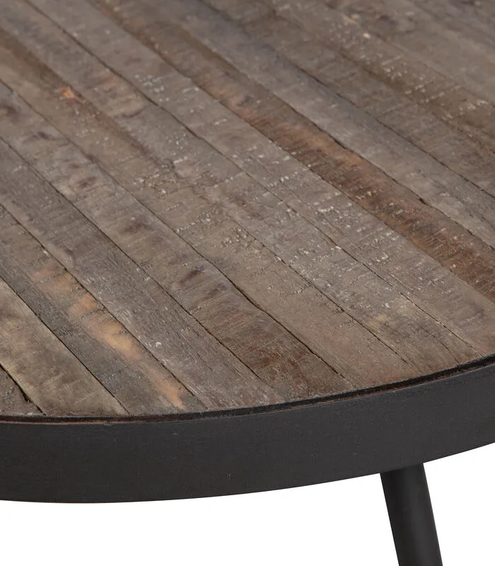 Een stoer en robuust tafelblad op een slank, matzwart potenframe. Deze stijlvolle combinatie vind je in de Maxime–serie uit de Exclusive collectie van het Nederlandse interieurmerk WOOOD. Het hout van de Maxime items is gerecycled teakhout met een grove look en warme kleurstelling. Door de karakteristieke uitstraling van het gerecyclede hout heeft elk item unieke eigenschappen.
