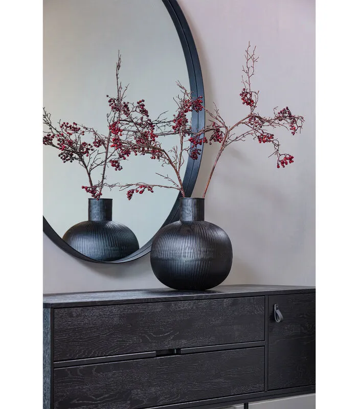 Pixie is een stoere bolvormige vaas uit de collectie van het Nederlandse merk WOOOD Exclusive. Pixie is gemaakt van staal en heeft een zwarte finish. De ronde vormen in combinatie met de verticale lijnen geven een speels effect aan de vaas. Pixie heeft een smalle bovenkant opening van 8,5 x ø9 cm.