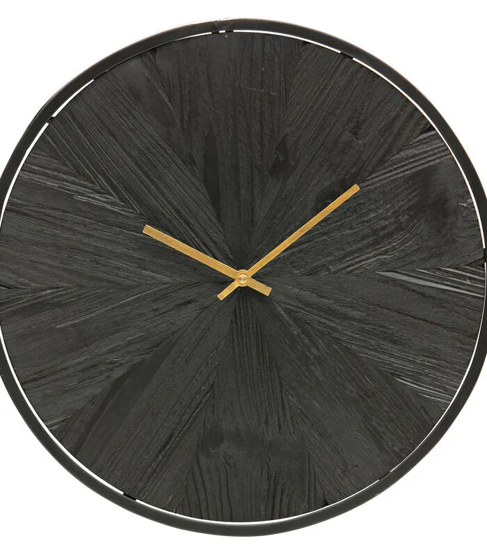 WOOOD Exclusive Valentino Wandklok 42x42x5cm (bxhxd) is een moderne wandklok uit de collectie van het Nederlandse merk WOOOD Exclusive. De Wandklok heeft een simplistisch design, maar een stoer uiterlijk. De Valentino Wandklok is zwart afgewerkt en gemaakt van mdf, brandhout en heeft een metalen frame. De breedte van de metalen rand rondom de klok is 1 cm. De grote wijzer is 15 cm lang en de kleine wijzer 11,5 cm. De wijzers hebben een goudkleurige afwerking. Artikelkenmerken