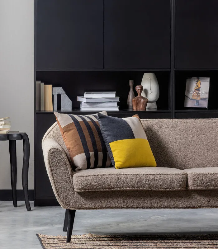 Voeg een statement sierkussen toe aan jouw zithoek. Sierkussen Valery, van het Nederlandse interieurmerk WOOOD, heeft een formaat van 45×45 cm. De kussenhoes is gemaakt van 100% katoen en heeft een grafische print in de donkere cast iron kleur, een warme bruin– en zandtint en een sprekende okergeel. De vulling bestaat uit 100% polyester.