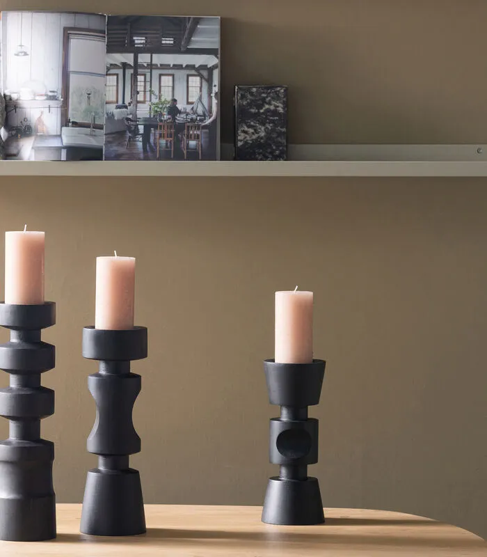 Meet our Midi’s! De Midi kandelaarserie komt uit de Exclusive collectie van het Nederlandse interieurmerk WOOOD en zijn een lust voor het oog. Het grove design in combinatie met de natuurlijke nerftekeningen van het mangohout zorgen voor een stoer geheel, de diepzwarte kleur maken de kandelaar helemaal af.