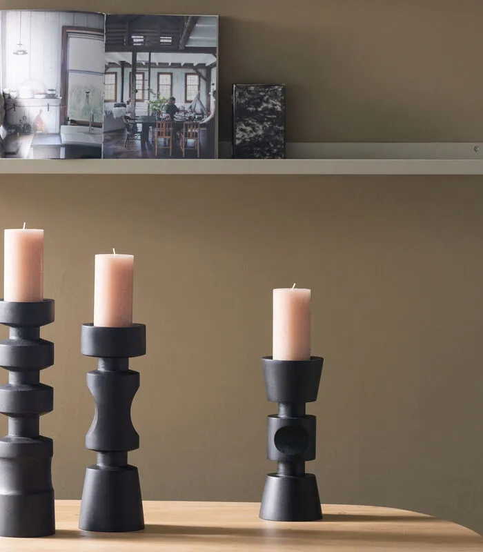 Meet our Midi’s! De Midi kandelaarserie komt uit de Exclusive collectie van het Nederlandse interieurmerk WOOOD en zijn een lust voor het oog. Het grove design in combinatie met de natuurlijke nerftekeningen van het mangohout zorgen voor een stoer geheel, de diepzwarte kleur maken de kandelaar helemaal af.