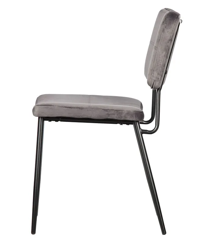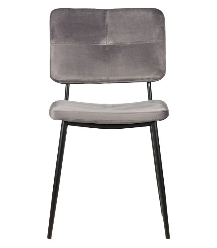 Urenlang comfortabel tafelen is geen probleem met eetkamerstoel Kaat uit de WOOOD collectie. Kaat eetkamerstoel is een comfortabele, trendy stoel bekleed met een stevige fluweel stof (100% polyester) in de kleur antracietgrijs met een metalen onderstel in zwarte poedercoating. In de rugleuning en de zitting is een stoere vakkenverdeling gestikt. De stoel heeft een goed zitcomfort door de zithoogte van 46 cm, de zitbreedte van 44 cm en de zitdiepte van 43 cm. De combinatie van de antracietgrijze stof geeft een mooi geheel met het zwart afgewerkte buisframe. Hierdoor krijgt Kaat een trendy uitstraling en past daardoor in meerdere woonstijlen. Deze stoel is ook leverbaar in de kleuren karamel en zwart. Wil je een speels effect aan de eettafel creëren? Combineer dan de kleuren onderling met elkaar.