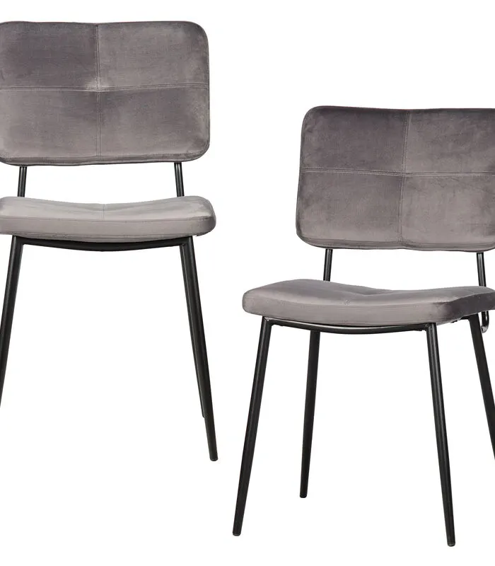 WOOOD Kaat Eetkamerstoel – Velvet – Antraciet – Set Van 2