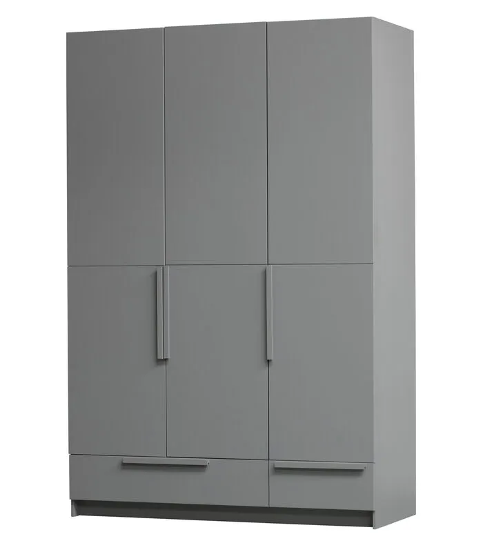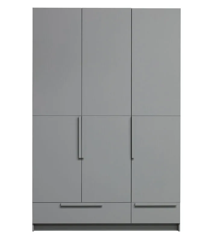 Deze royale, strakke en elegante 3–deurs hang–leg kast Pure van het merk WOOOD is gemaakt van massief FSC gecertificeerd grenen, gelakt in een moderne betongrijze kleur en heeft een geschuurde afwerking. De Pure kast (215x142x60) is een 3–deurs hang–legkast en maakt deel uit van de splitdeur serie. Deze deur heeft een groef over de breedte van de deur, waardoor het de illusie creëert alsof de kast beschikt over meerdere deuren. De deuren zijn voorzien van een softclose systeem en beschikken over een robuuste greep. Het interieur van de Pure kast wordt standaard geleverd met hanggedeelte voorzien van metale roede en 1 legplank over de gehele breedte van de kast. Aan de rechterzijde van de kast bevindt zich nog een extra deur. Het interieur van deze kast bestaat uit 4 legplanken. Onderaan de kast bevindt zich nog een lade, voorzien van softclose systeem, waar je spullen in kunt opbergen die onttrokken worden aan het oog. De Pure kasten serie, bestaat uit een 1–, 2– en 3–deurs kast voorzien van een lockerdeur of een splitdeur. De kastenserie is schakelbaar, waardoor je een kastenwand op maat kunt maken. Altijd precies wat je nodig hebt dus!