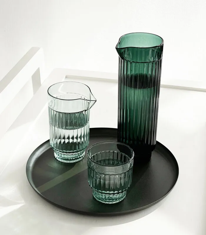 De stapelbare Lima glazen met bijpassende karaffen en kommen zijn vakkundig met de mond geblazen. Elk stuk is lichtjes verschillend van het andere, omdat elk stuk met de hand gemaakt is. Het blazen van het glas in een mal vormt het fijne ribbelpatroon en creëert een moderne maar elegante uitstraling. Schenk uw favoriete drankje in en zie hoe het licht en de textuur verschijnen in de rimpelingen van het glas. Kies uit 5 verschillende kleuren in afwerking. Combineer de tumblers met de karaffen en kommen om een perfecte tafelsetting te creëren. Met Lima is een geweldige avond onvermijdelijk.
