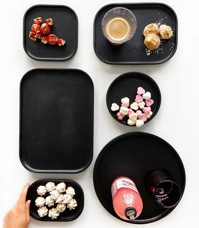 Het Nero dienblad is het ontbrekende stuk dat u wilt en nodig hebt om uw gasten in stijl te bedienen. Het presenteren van glazen en verfrissingen op deze schaal geeft uw diner net dat beetje extra. De dienbladen zijn voedselbestendig en zorgen ervoor dat je hapjes er extra lekker uitzien. Nero combineert functionaliteit en stijl in één unieke collectie. Een geraffineerd product gemaakt met veel passie en pure expressies. Met andere woorden, bij XLBoom draait het allemaal om de details. De plateau’s zijn verkrijgbaar in verschillende vormen en maten.