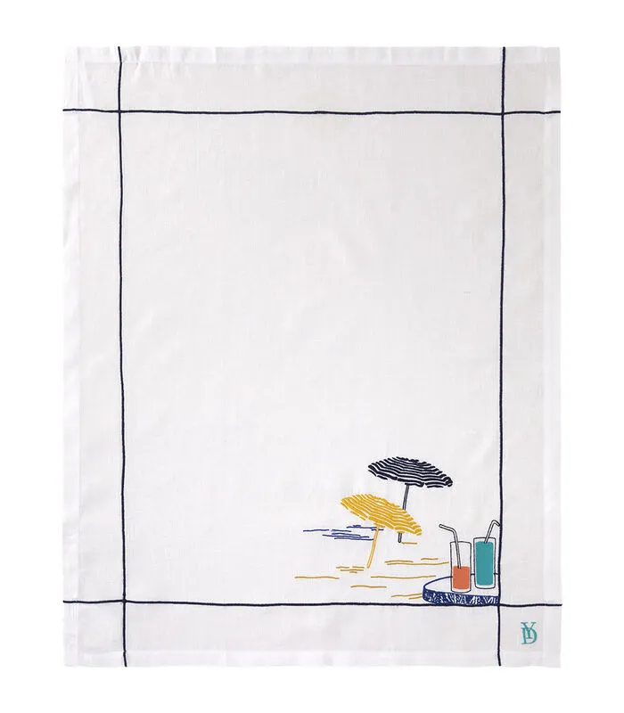 Dankzij de samenstelling van 100% linnen biedt de Azur theedoek een grote weerstand, een uitstekende absorptie en een snelle droging. Het mooie borduurpatroon zorgt voor een zomers tintje.